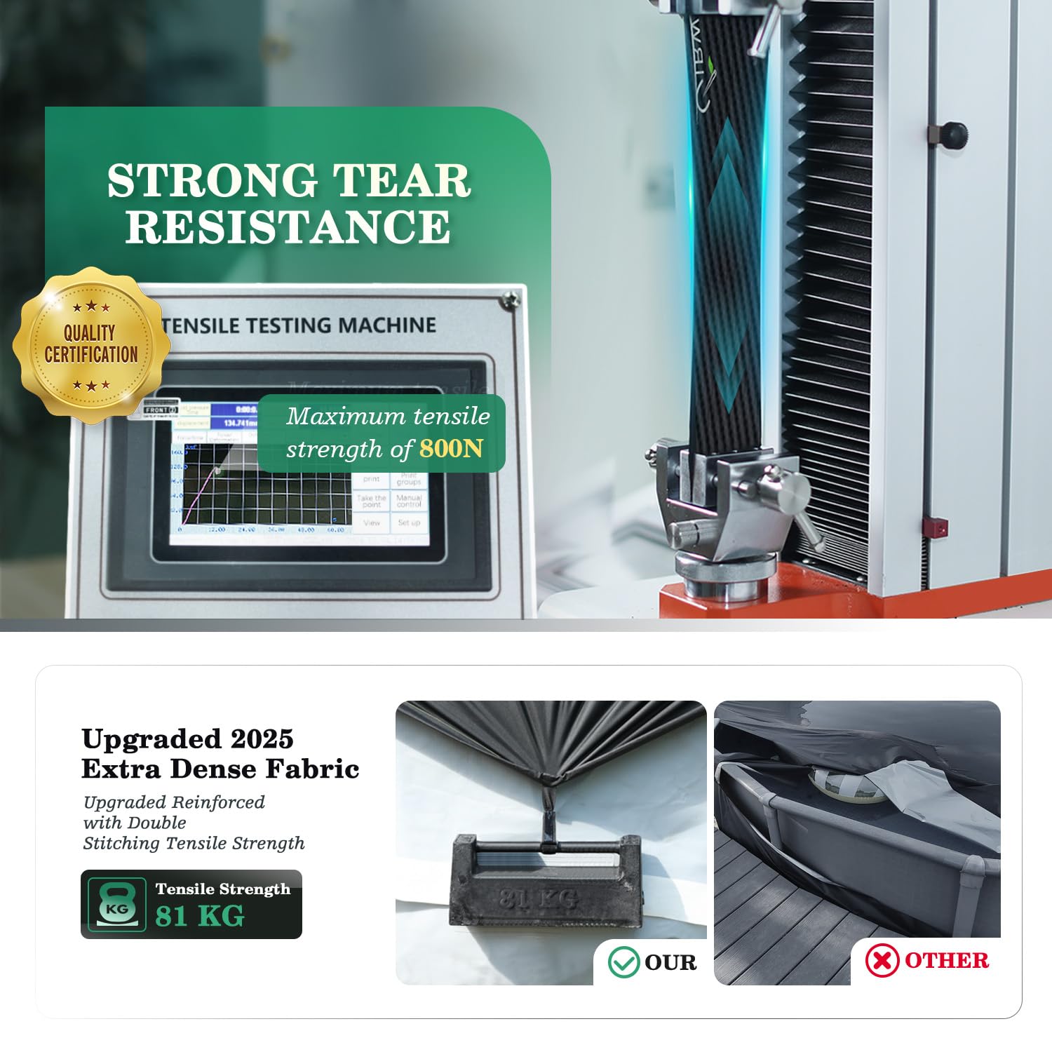 • Heavy-Duty 200gsm Fabric: Tear-resistant with 16x18 scrim count and 220LB tensile strength.